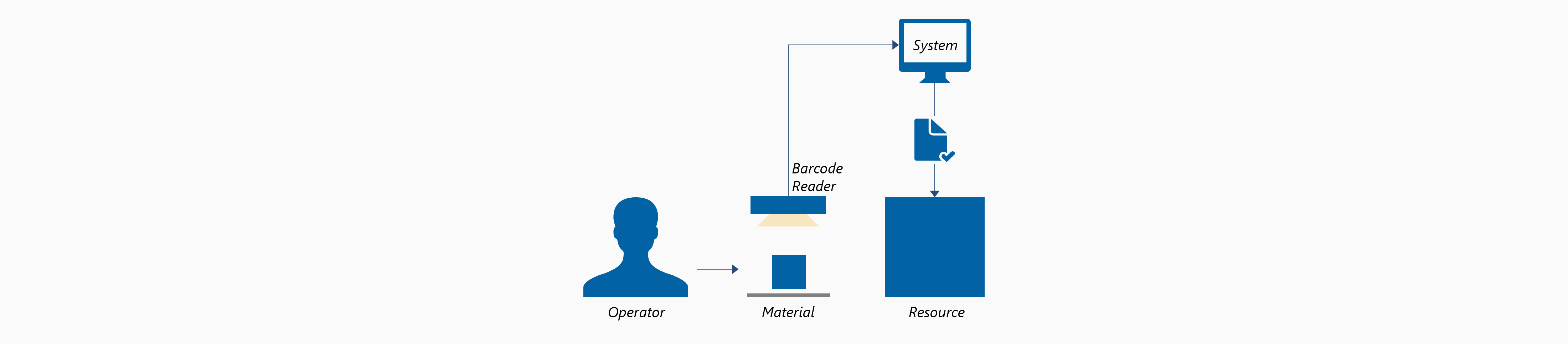 • Scans a barcode from the Material to indicate that the Material is going to start processing on the Resource.