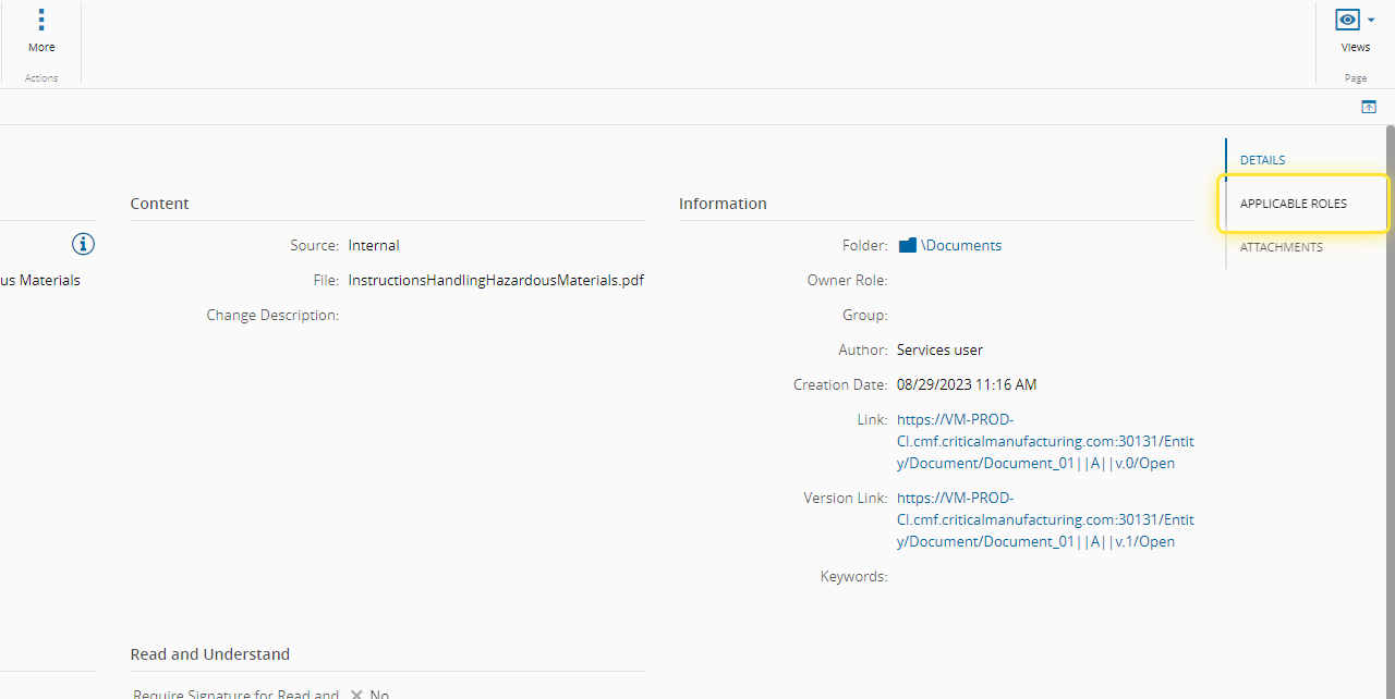 For more information, see Manage Applicable Roles - Critical Manufacturing Documentation Portal ⧉