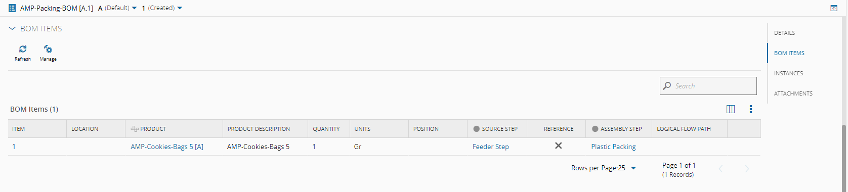 1. Configure the BOM Context in the packing step, which for this example is Plastic Packing: