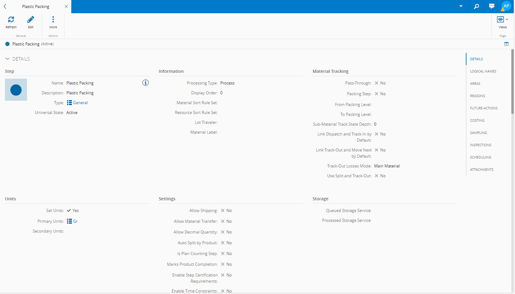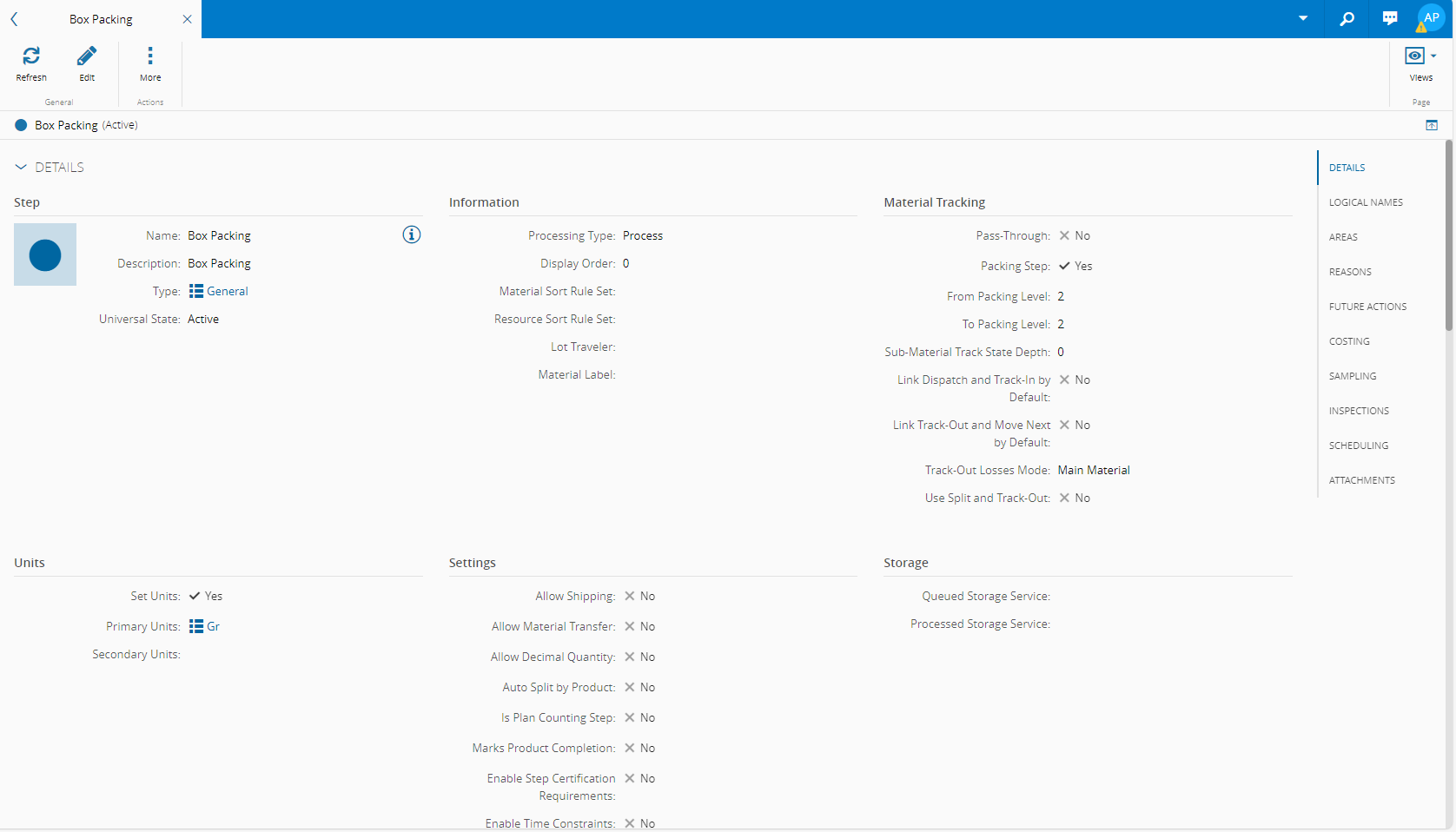 1. Create a Step of Processing Type Process. At this level we have to mark the Packing Step field as True and define the From Packing Level and To Packing Level: