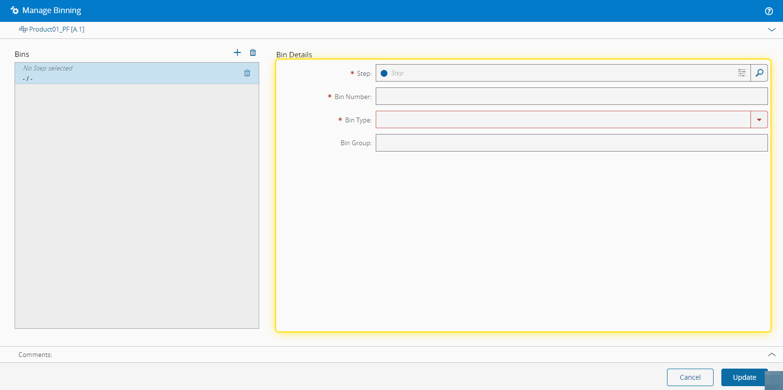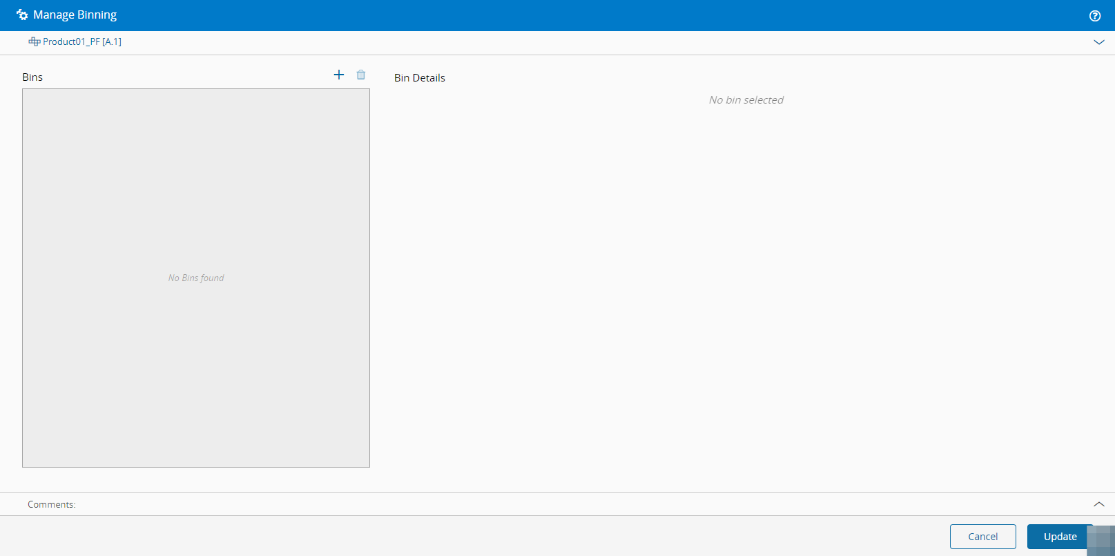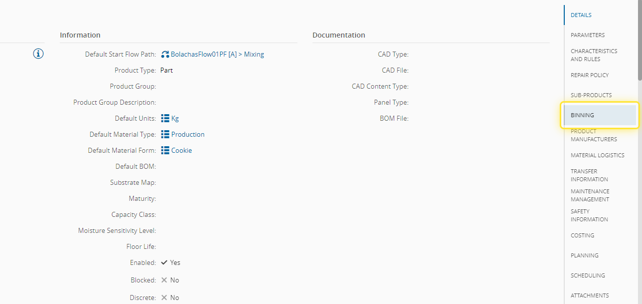 For more information, see Manage Binning Tree - Critical Manufacturing Documentation Portal ⧉