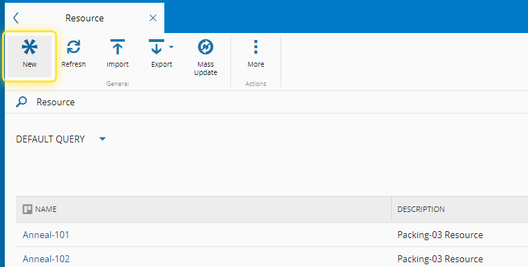 For more information, see Create Resource - Critical Manufacturing Documentation Portal ⧉