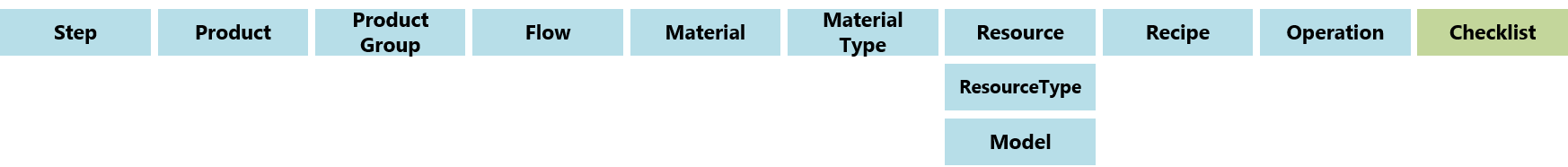 - 步骤、操作、产品组、流程、物料类型