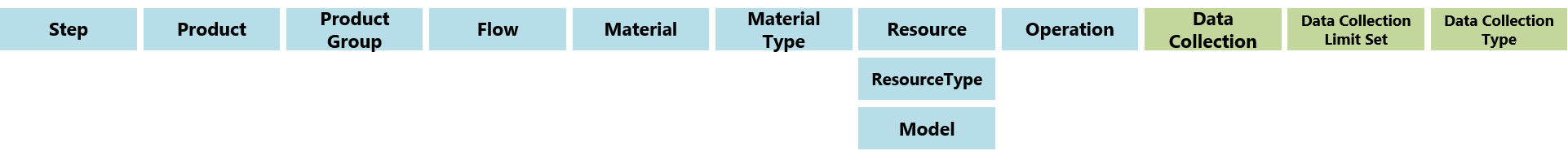 - 步骤,产品组,物料类型,操作