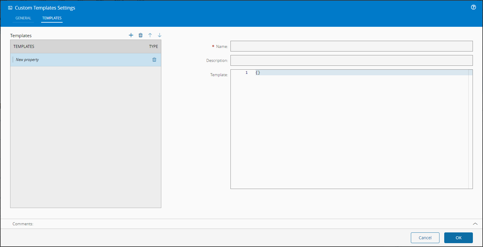 “自定义模板”任务用于通过 JSON 内容向驱动程序定义添加属性、事件和命令。