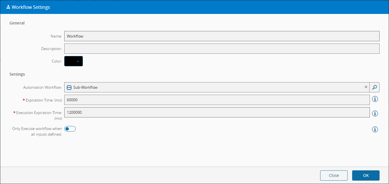 | 仅在定义了所有输入时执行工作流 | Boolean | false | 只有在同一区域/上下文中已填充所有输入时才会开始执行 |
