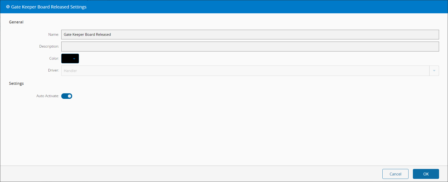 此任务将侦听BoardGateKeeper.Event.BoardRequestRelease,自动化异常流程中的驱动程序OIB文档对此进行了说明。收到来自此类型的消息时,任务将发出输出。