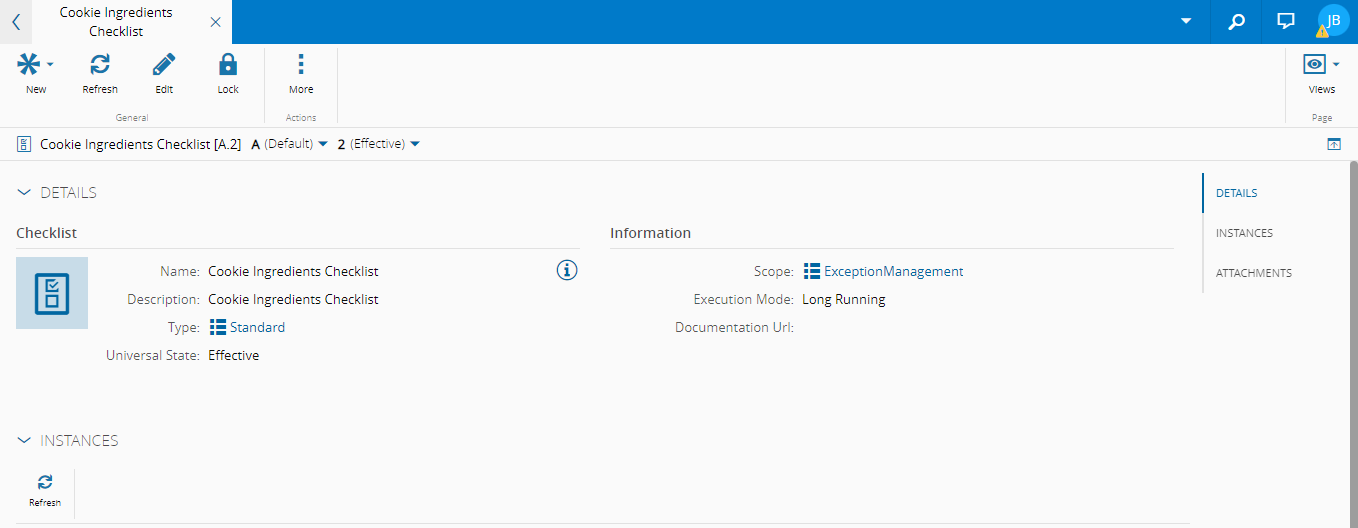 - 详细信息 - 显示有关检查清单的一般信息。