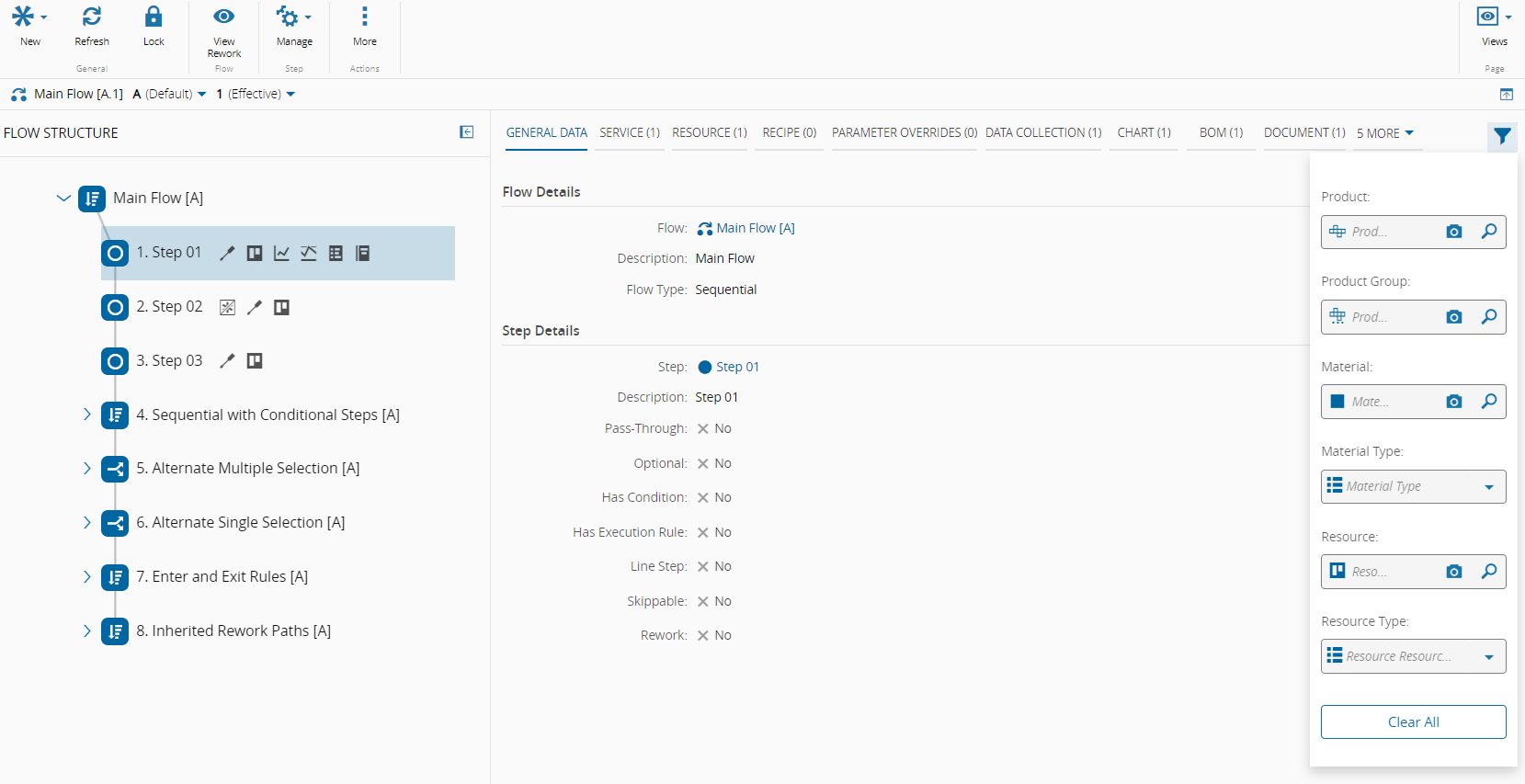 此视图显示有关流程的结构或属于流程的一部分的步骤的信息。用户可以决定要在主结构流程中查看的上下文信息的类型: