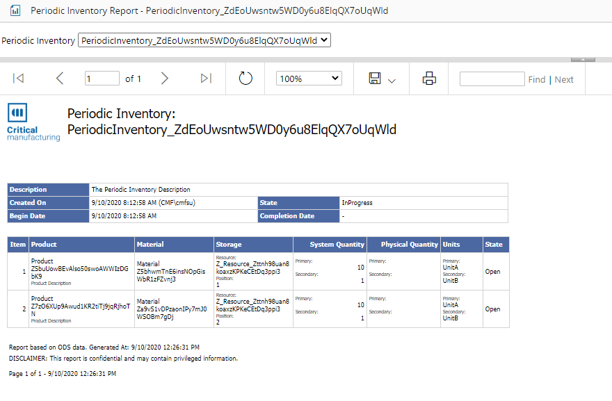 material logistics reports 查看定期库存报告# PeriodicInventory.ViewReport 概述# 此操作用于查看从定期库存生成的特殊报表。 设置# 除了满足前提条件外,不需要进行特殊设置。 前提条件# 系统中存在定期库存。 步骤顺序# 步骤1# 按顶部功能区中的查看报表按钮完成操作。此时将打开一个窗口,其中包含要打印的格式化报告。
