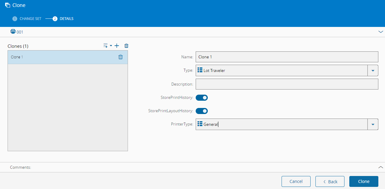 要克隆可打印文档,必须先打开现有可打印文档版本,然后 按克隆按钮。默认值将取自要复制的可打印文档版本 。