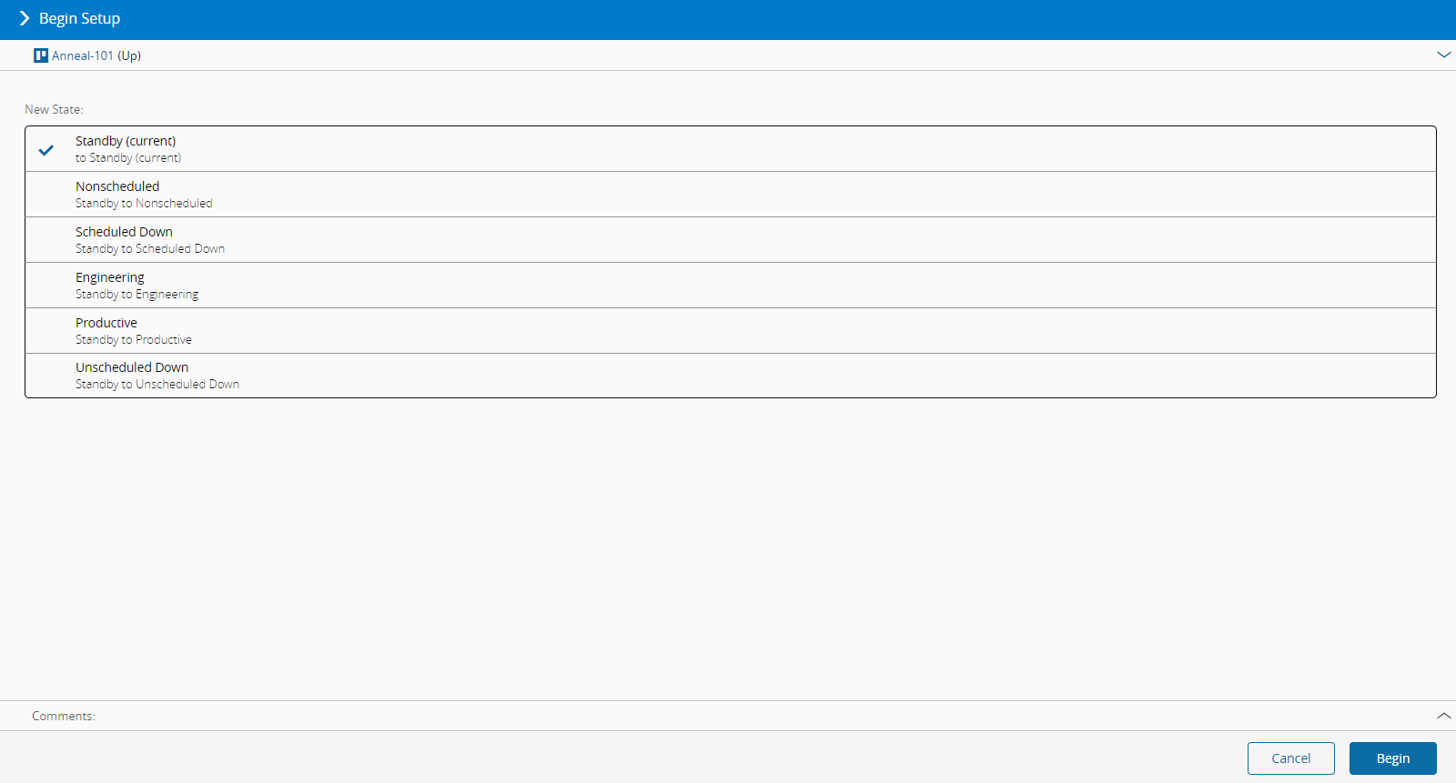 开始设置# Resource.BeginSetup 概述# 此操作用于将资源标记为处于设置状态。 设置# 除了满足事务前提条件外,不需要任何特定设置。 前提条件# 资源的处理类型为流程。 资源属性InSetup必须为false。 步骤顺序# 步骤1:一般数据# 验证信息。 从列表中选择新状态时,资源的状态可能会发生更改。如果状态转换与原因关联,用户可以接受建议的原因或选择另一个原因。 (可选)输入备注。 按开始完成操作。