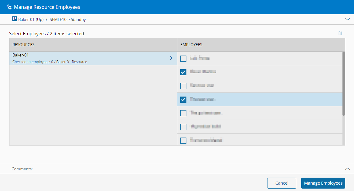 - 右侧将显示所有可用雇员的列表。选择应与资源关联的雇员。