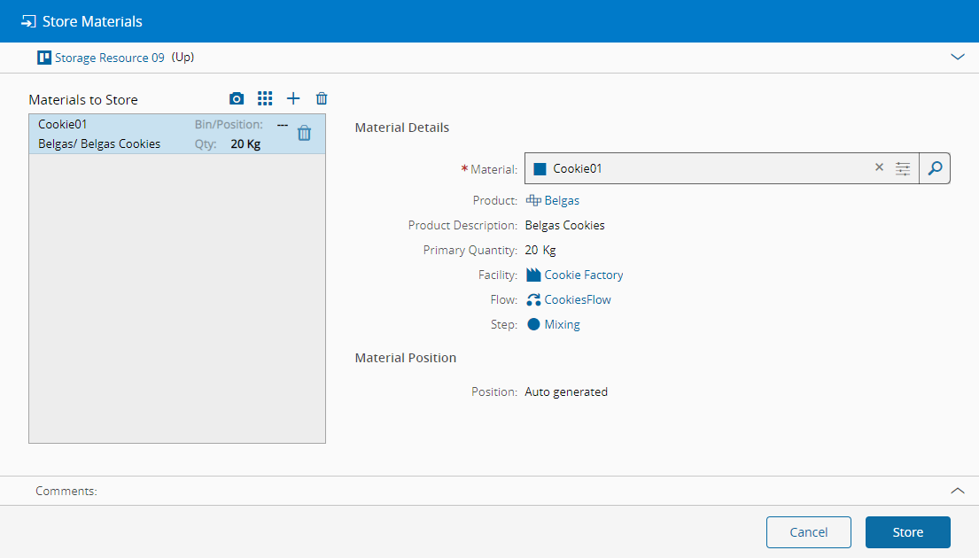 Store Materials in Resource