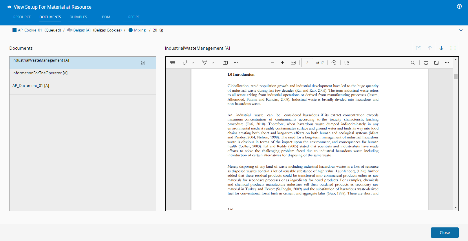 此操作用于查看一个资源中的一个物料的处理设置。这只是一个可视化工厂设施。