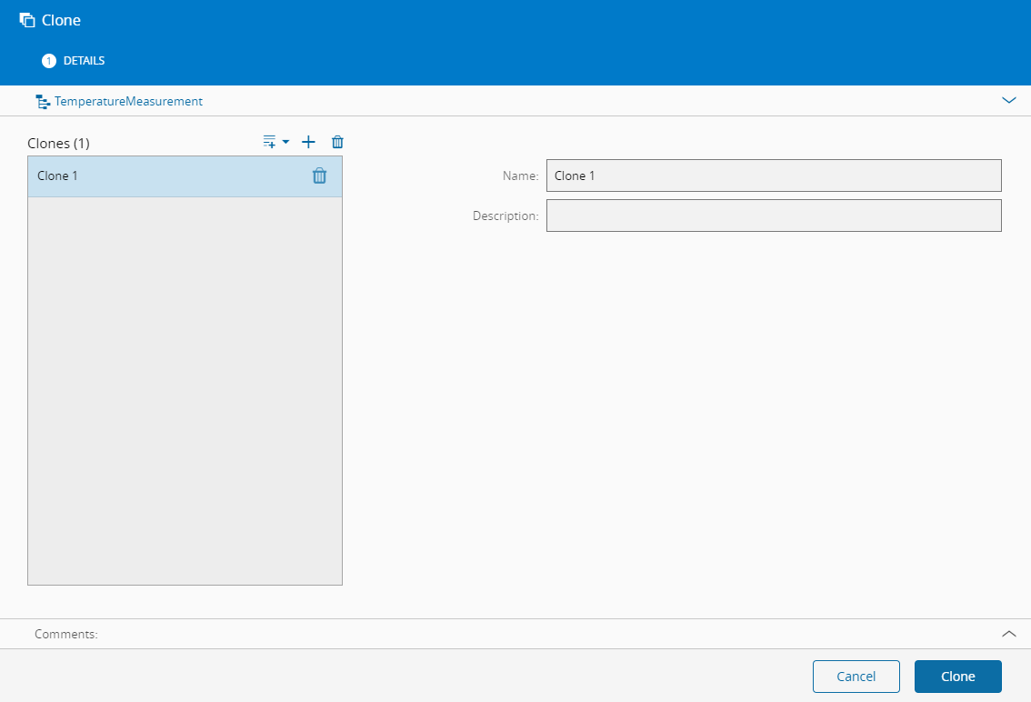 可以从“业务数据组”内的物联网架构页面调用“克隆物联网架构”向导。默认值将从当前物联网架构中获取,用作新对象的基础值。