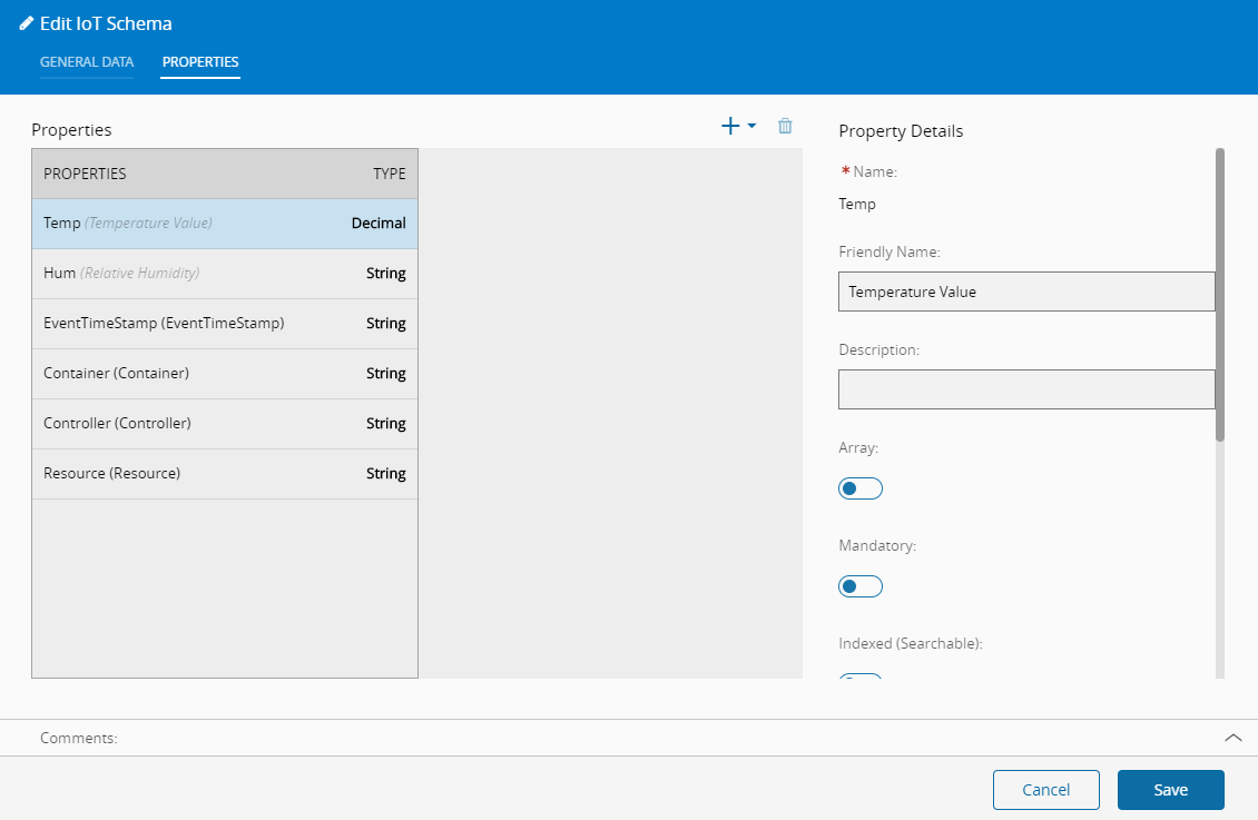 编辑物联网架构# IoTSchema.Edit 概述# 此操作用于编辑物联网架构。 设置# 除了满足事务前提条件外,不需要任何特定设置。 前提条件# 系统中存在物联网架构。 步骤顺序# 可以从“业务数据组”内的物联网架构页面调用“编辑物联网架构”向导。 步骤1:一般数据# 可以在此向导中更改所有非系统属性。 物联网架构的名称不可更改。