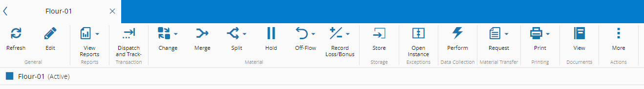 在Critical Manufacturing MES中,所有可用的实体都显示一个顶部选项卡,其中包含可以执行的操作和功能。这些操作以按钮的形式呈现,使用适当和用户友好的图标。
