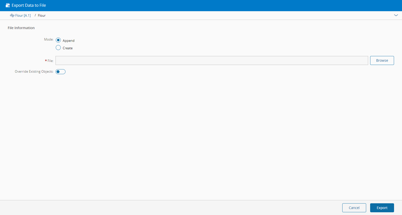 此选项将生成一个主数据包,在本例中相当于一个Excel文件,其中包含您要导出的实体的单个工作表,其中填充了该实体的数据。稍后,您可以使用管理菜单中的内置功能导入此主数据包。更多有关信息,请参见 主数据包.