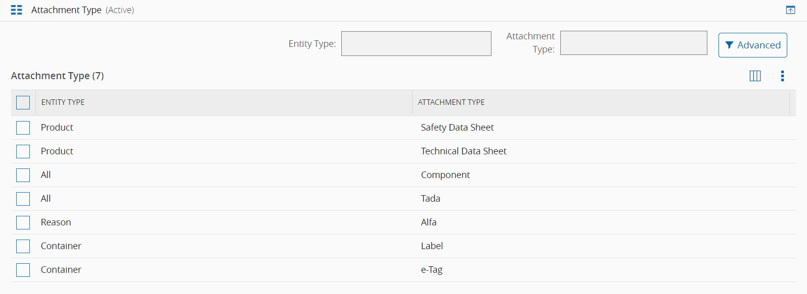 为了筛选将在添加附件向导中显示的附件类型,必须事先将正确类型的附件添加到附件类型通用表中。添加一个或多个实体类型和相应的附件类型时,系统只会显示与实体类型匹配的附件,并且均在其各自的上下文中显示。