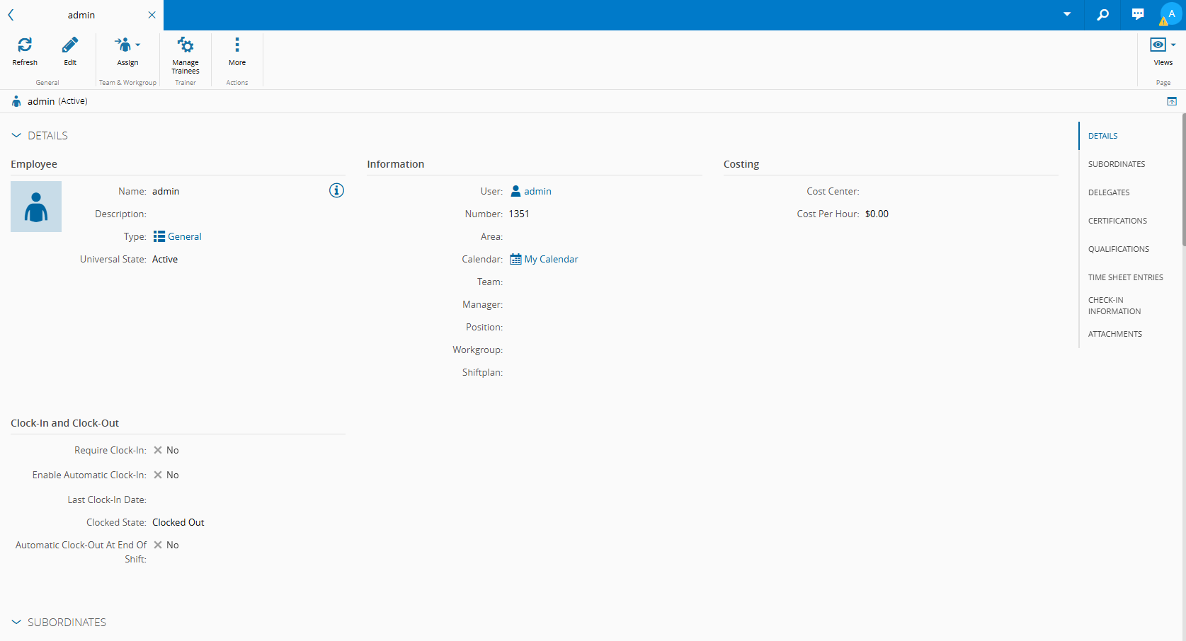 - Time Sheet Entries - provides an overview of the user time-related entries.