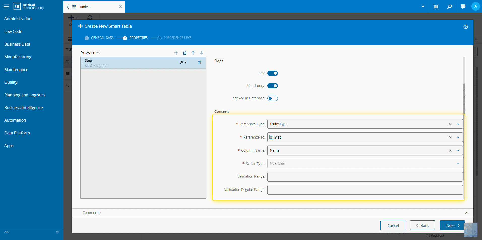 For more information, see Smart Tables - Critical Manufacturing Documentation Portal ⧉