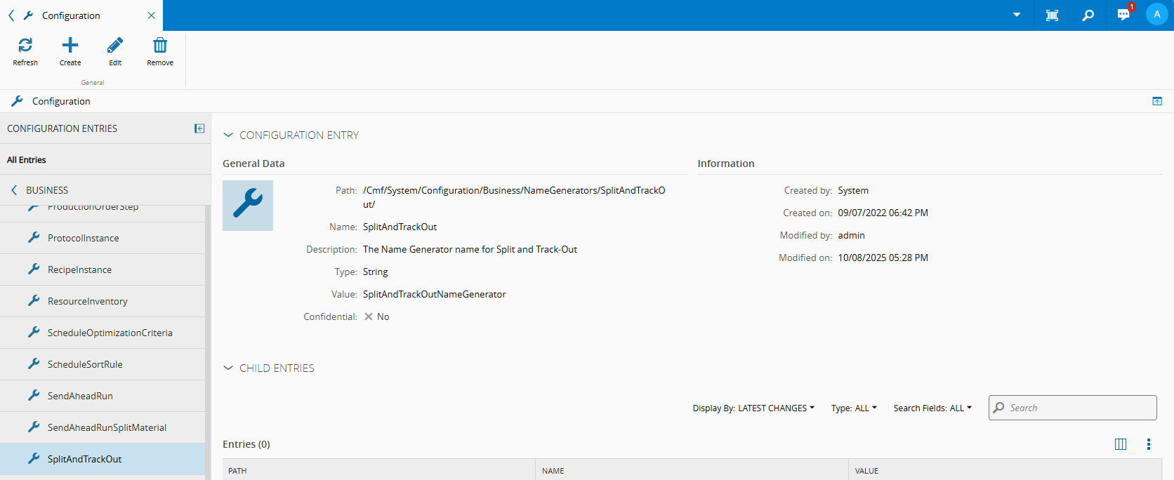 When the split is automatic, the system does not fetch the Name Generator name in the DEE Action code. Instead, the system uses the available Configurations in this path /Cmf/System/Configuration/Business/NameGenerators/.