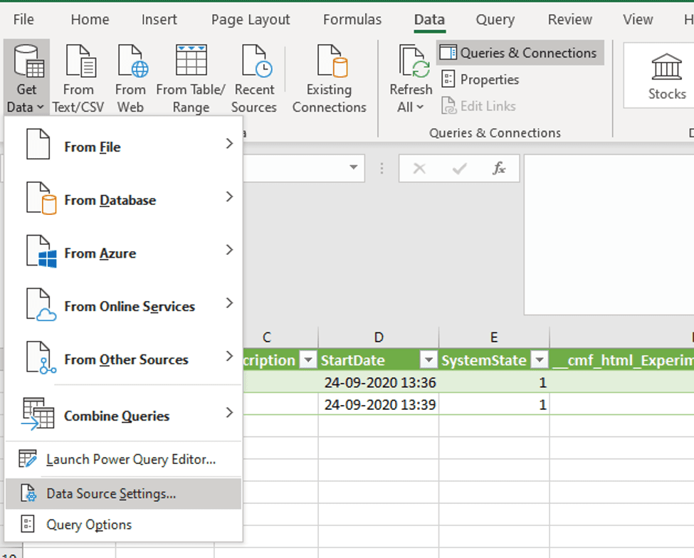 Microsoft Excel - Data Source settings
