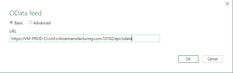 2. Paste the OData endpoint into the URL field and select OK. The application should redirect you to the OData feed window: