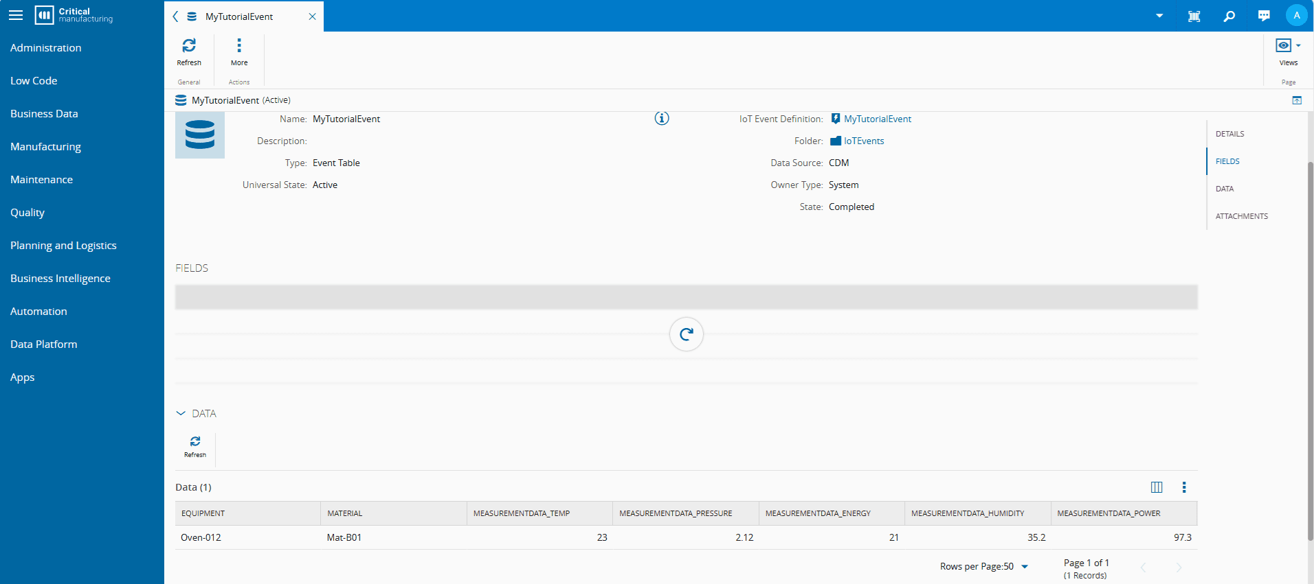 This data is now available to be accessed in multiple ways (OData, Grafana Dashboards, etc.). Thus, if you have a client continuously posting events using the Post Event host api, Data Platform will make this data immediately available for consumption.