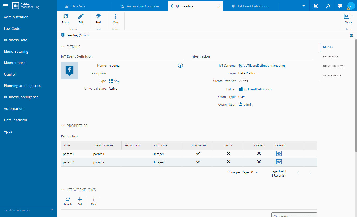 6. Define the IoT Workflows name and set the scope to Data Platform.