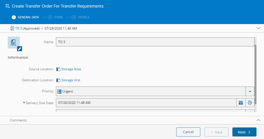 | Automatic Release | The Transfer Requirement will be automatically released if set to True. |