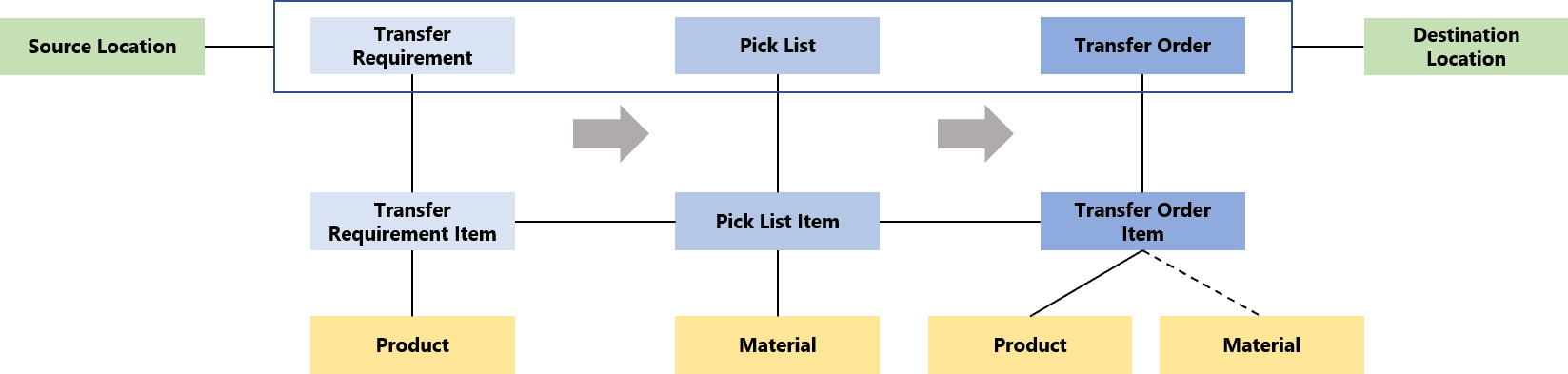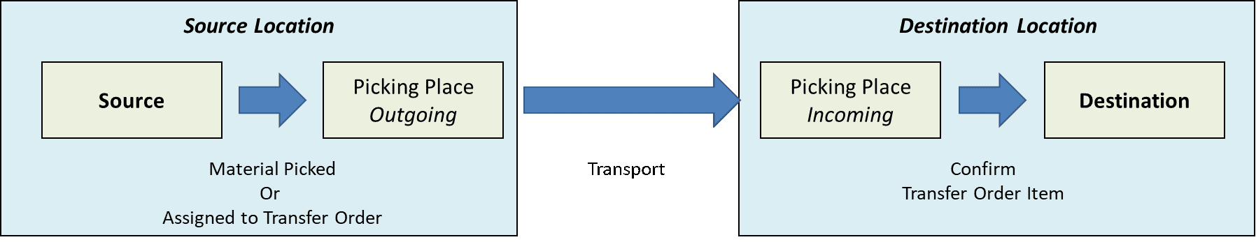 - The Materials can be stored in a Storage Resource of the Destination Location, if the Transfer Order Item Type is Material