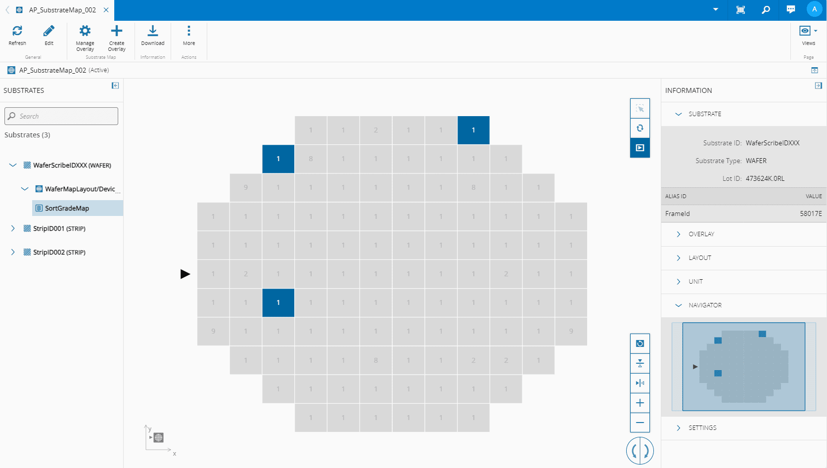 - Overlay Information - enables the visualization of existing Overlay Information and the possibility to manage the selected Overlay. For more information, see Manage Substrate Map Overlay Information.