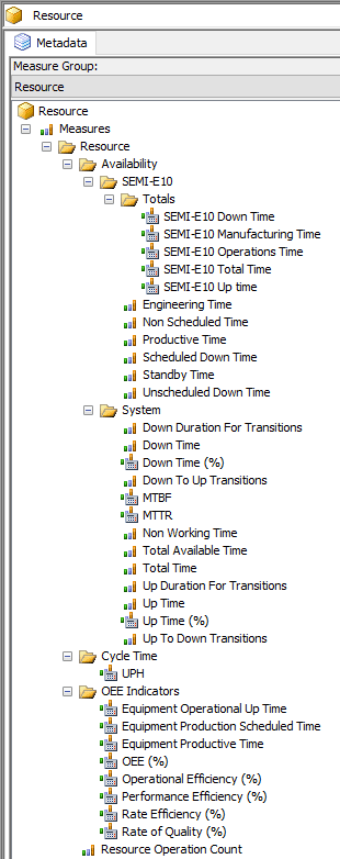 Resource State Model - This dimensions allow the selection and filtering of information using the pre-configured SEMI-E10 or any user defined state model.