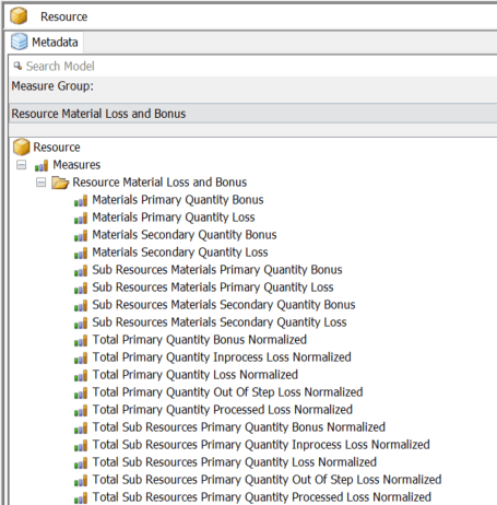 This section describes the Resource Material Processed Measure Group.