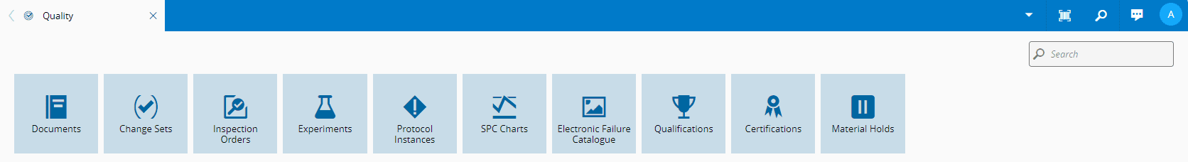 This page group provides access to specific entities related to Quality.