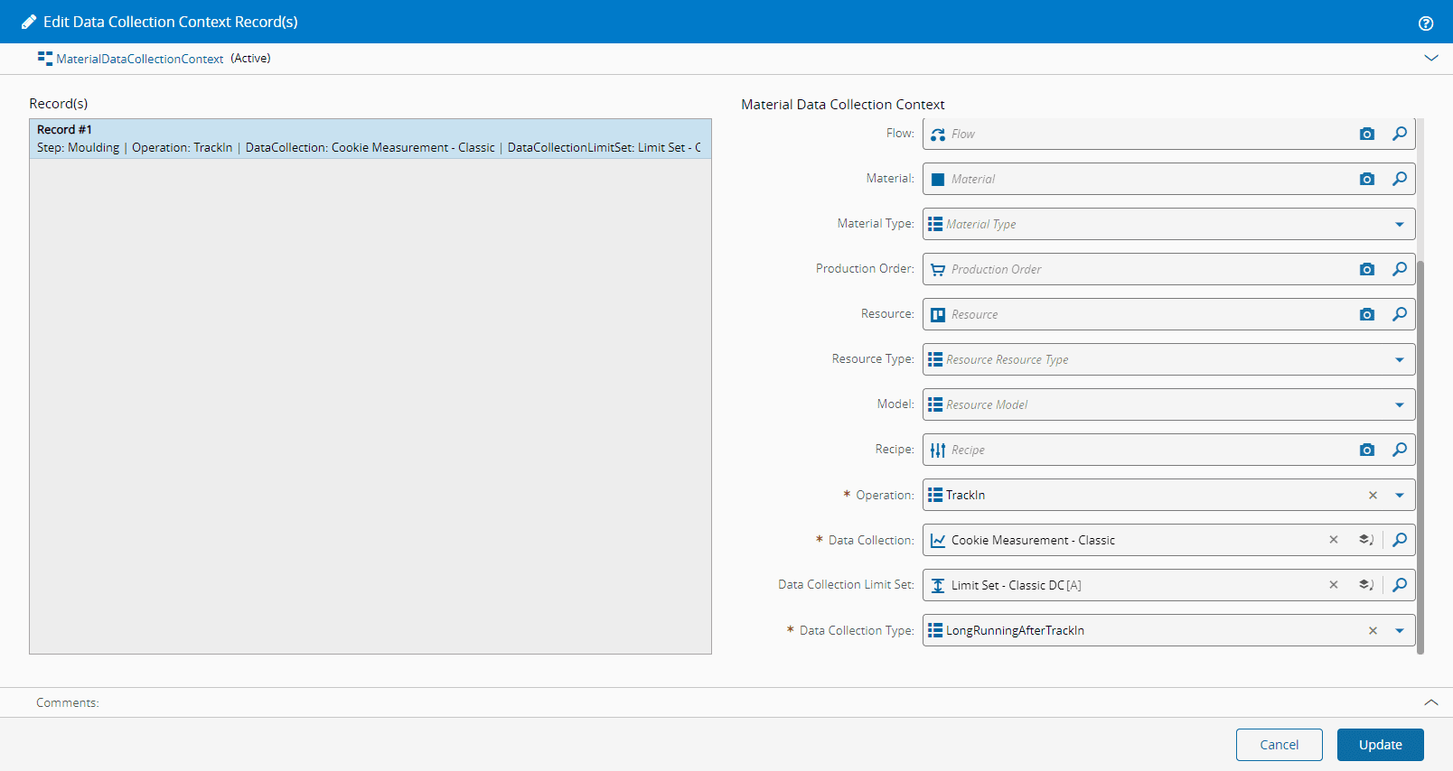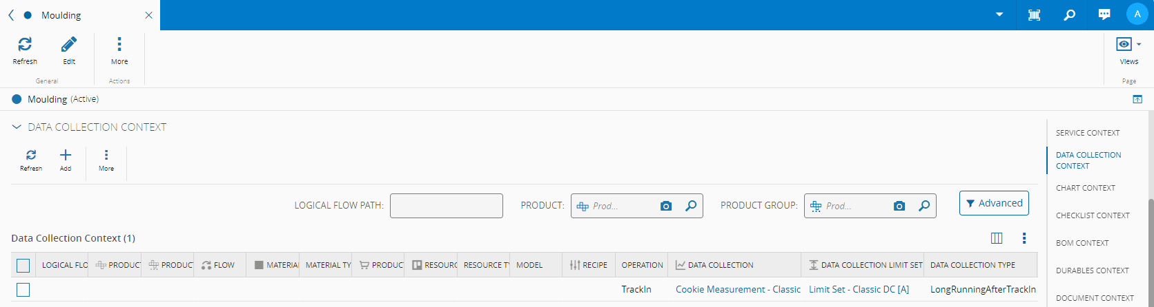 You can also associate a Data Collection via the MaterialDataCollectionContext smart table, in which case it is mandatory to specify the Step.