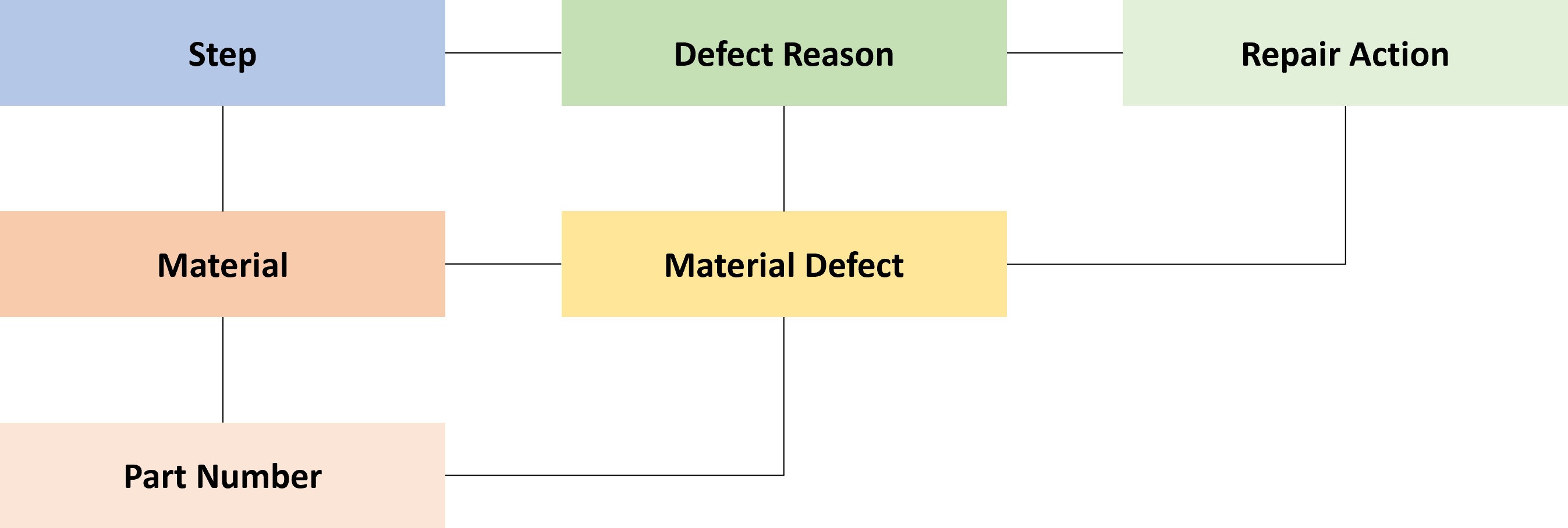 材料缺陷的分类登记在实体类型原因下,其类型定义为Defect(缺陷)。