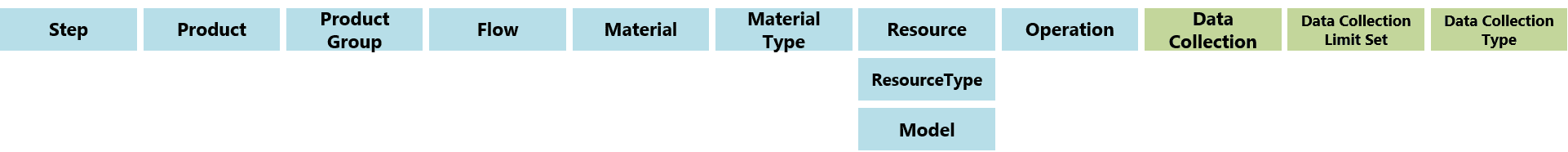 - 步骤,产品组,物料类型,操作