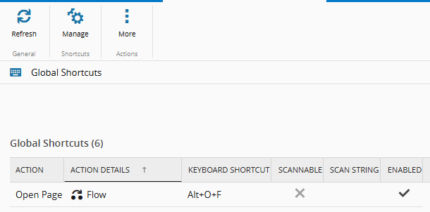 Global Shortcuts allow administrators to define keyboard shortcuts that work consistently throughout the application for all users.