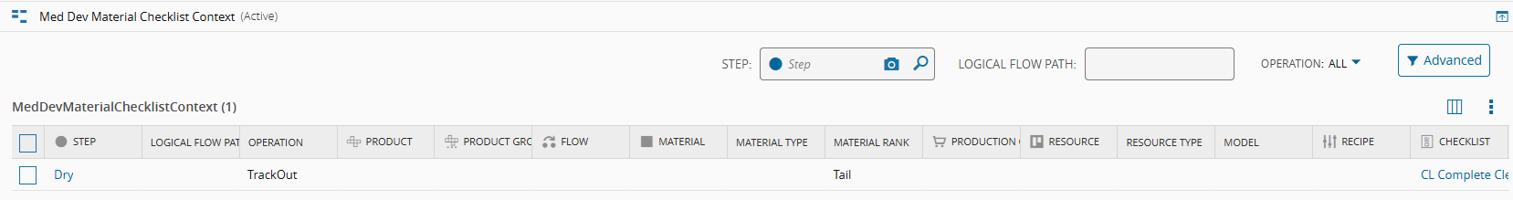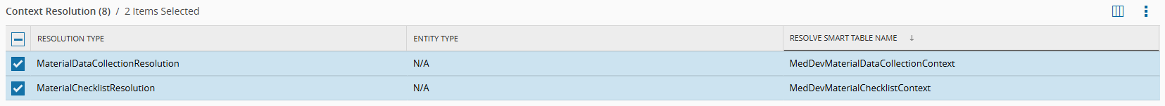 ContextResolutionwith both MedDev Smart Tables to ensure the resolution includes the MaterialMedDevMaterialRank: - MaterialChecklistResolution: