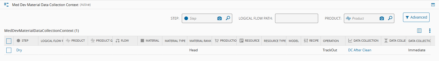 MiddleorTail*Refer to configuration in Smart Table MedDevMaterialDataCollectionContext*