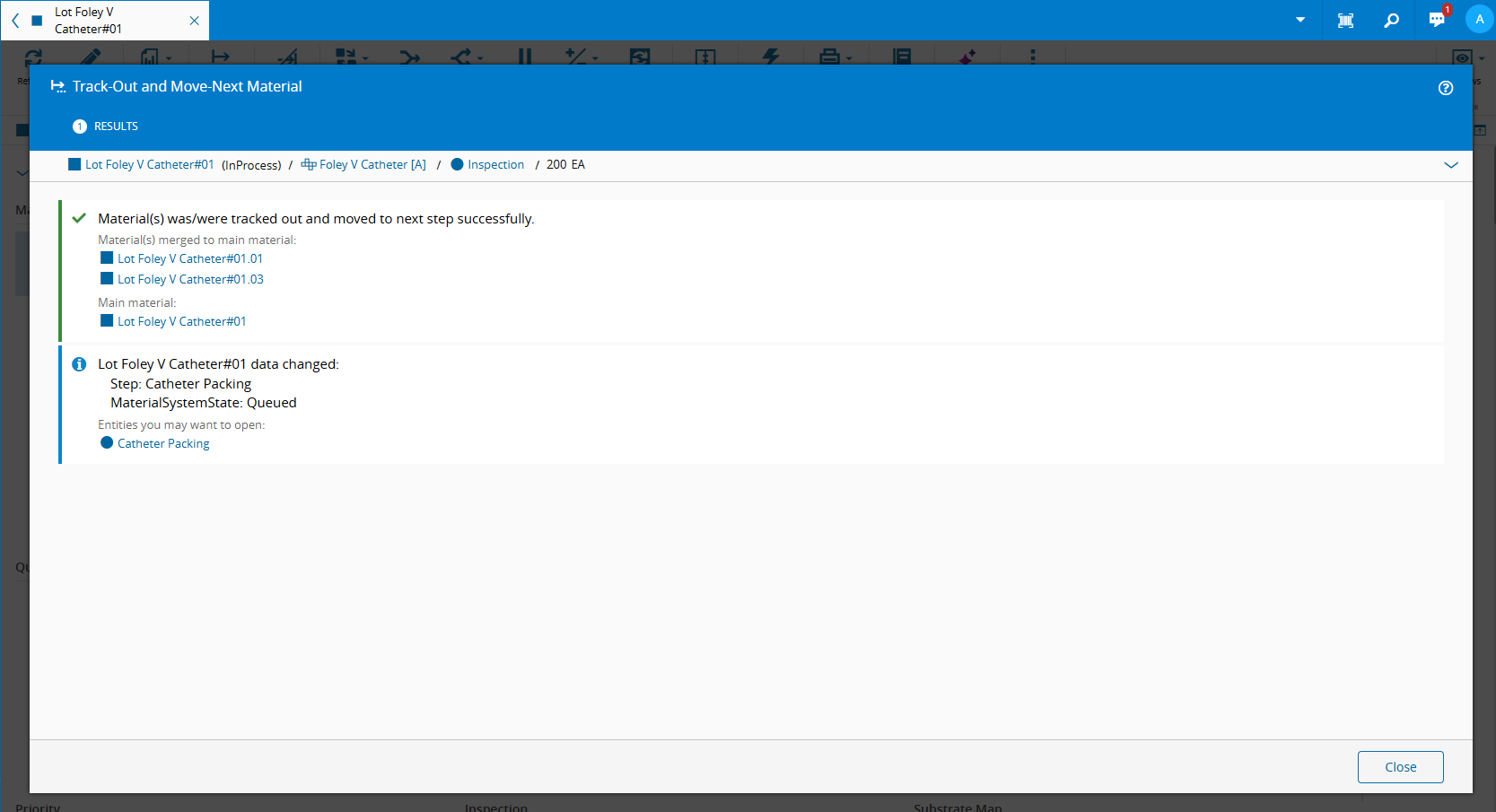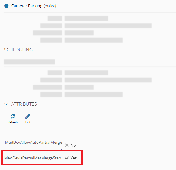 MedDevIsPartialMatMergeStepattribute on the designated merge step Catheter Packing - If no such Step is found, the system assumes Materials will be merged manually