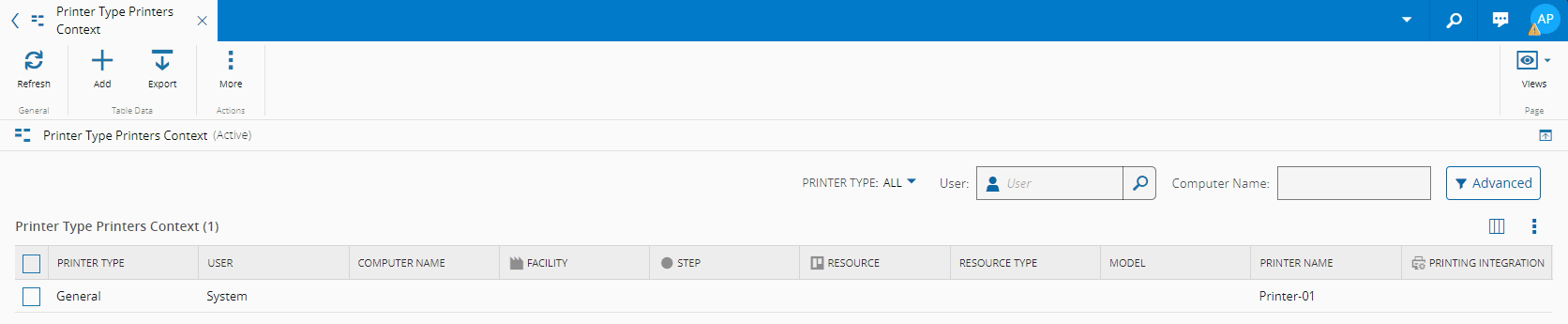 Printer Type Printers Context (Smart Table)#