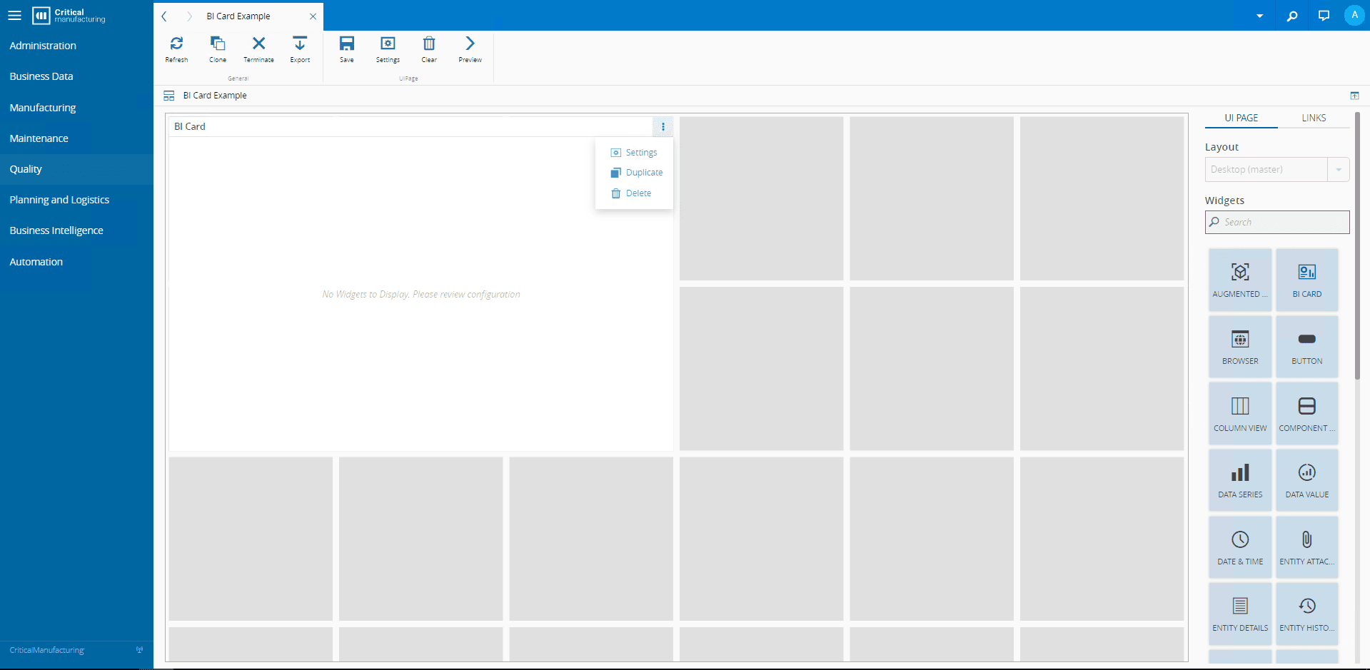 BI Cards must be configured as a Widget in a UI Page.