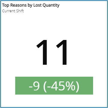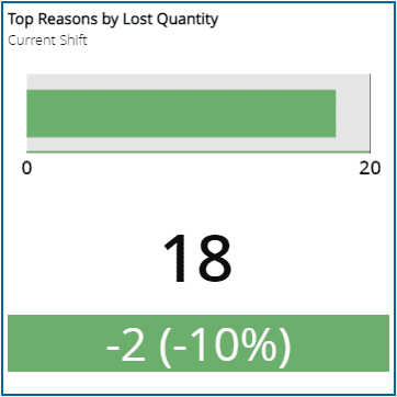 | Top Reasons by Lost Quantity | - Facility - Product Group | The Loss Reasons with the highest Lost Quantity for the selected Product Group. | - Current Day - Current Shift - Current Week - Current Month | Minimum | KPI Decimal | |