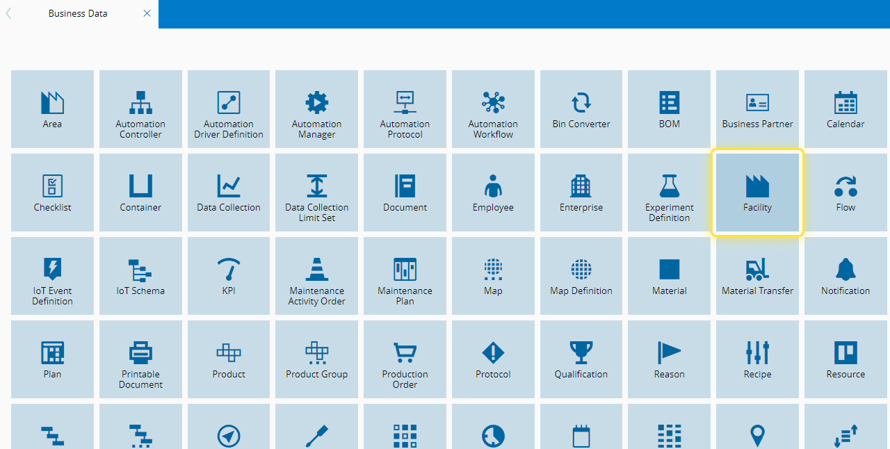 For more information, see Create Facility - Critical Manufacturing Documentation Portal ⧉