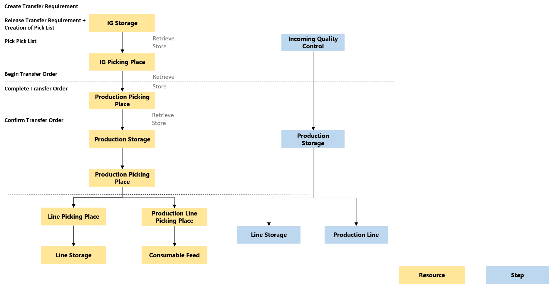 - The Materials can be stored in a Storage Resource of the Destination Location, if the Transfer Order Item Type is Material