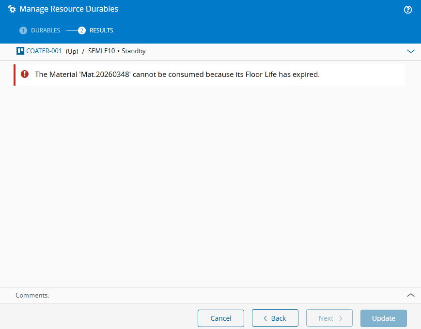 - Assign the durable while the remaining floor life is valid and confirm that the operation succeeds.